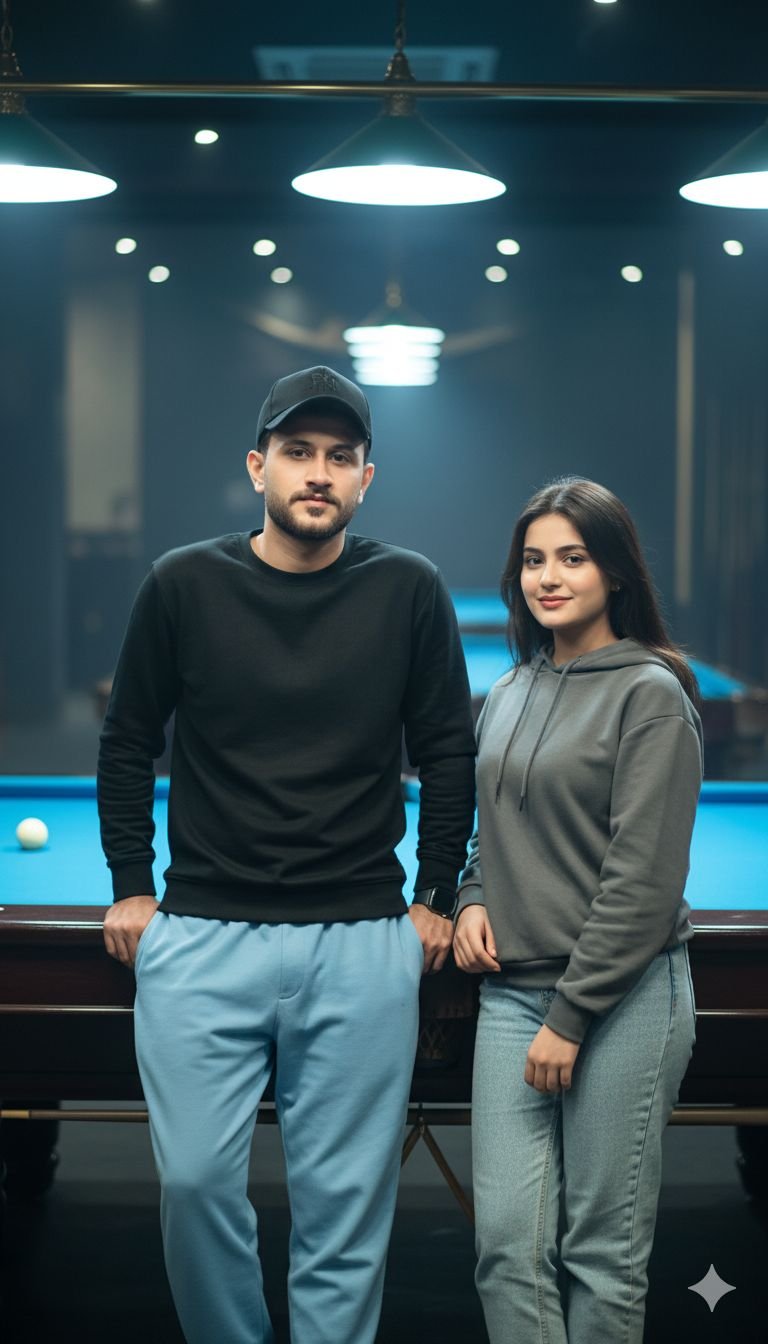 16K ultra-realistic cinematic portrait of a young boy stand in front of luxury billiard table. He is wearing Black swad …