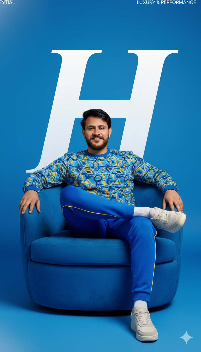 Advertisement: A striking, modern advertisement featuring a handsome male (my face 100% match), with short, stylish hair and glasses, sitting …