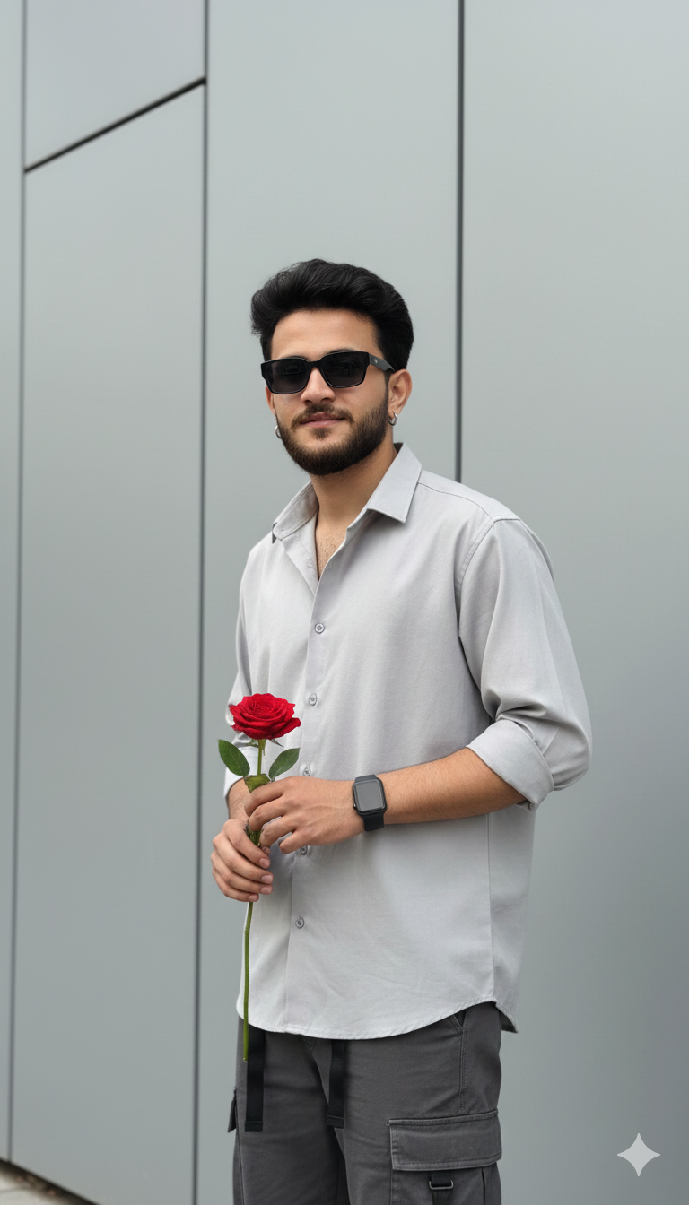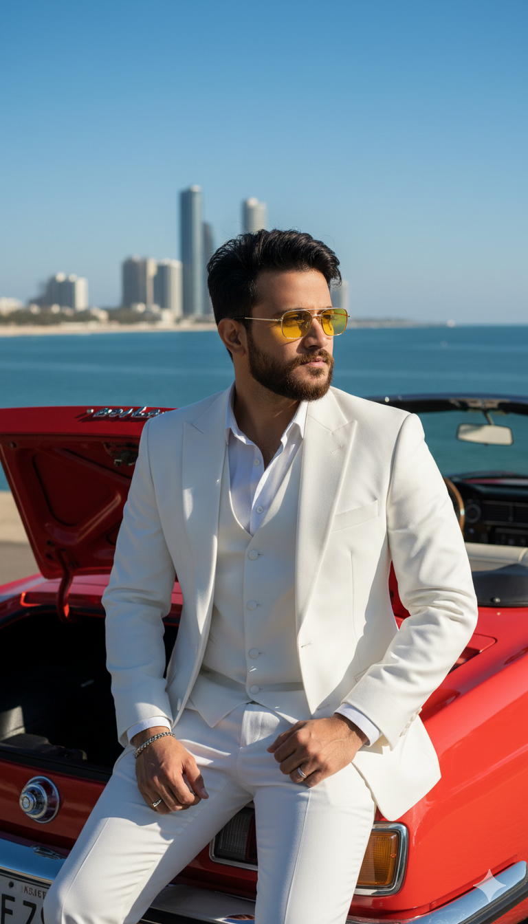 Ultra-realistic, high-quality cinematic portrait of a young stylish man, using the uploaded image for the exact same face and hairstyle. …
