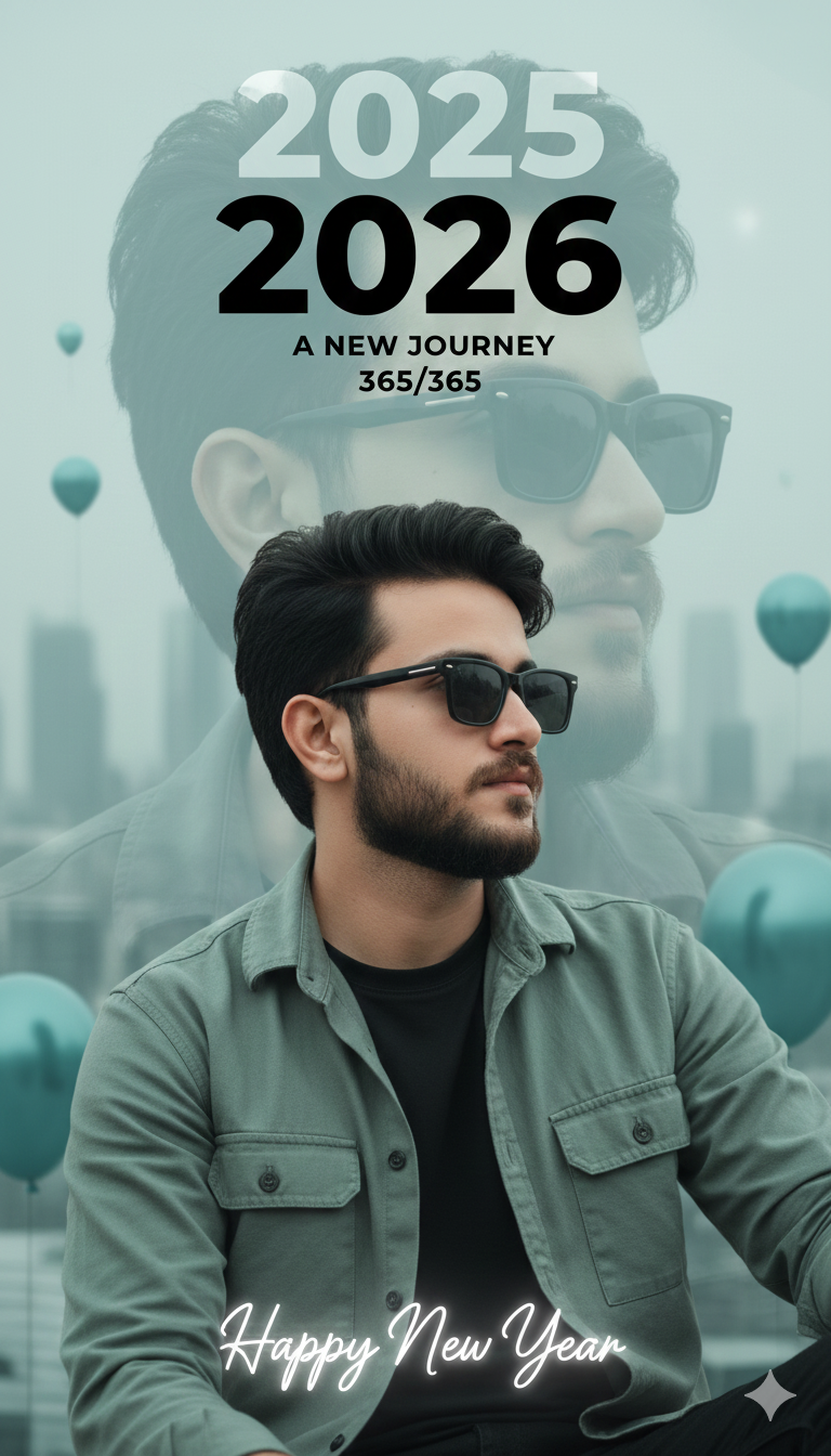 Create a professional cinematic New Year poster using my face, exactly matching the reference image style. The subject is a …