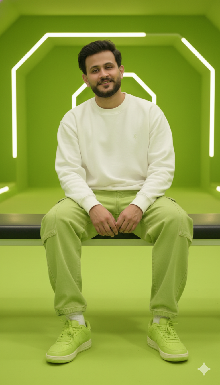 Digital photo of a young man (use my photo as a reference) sitting on a